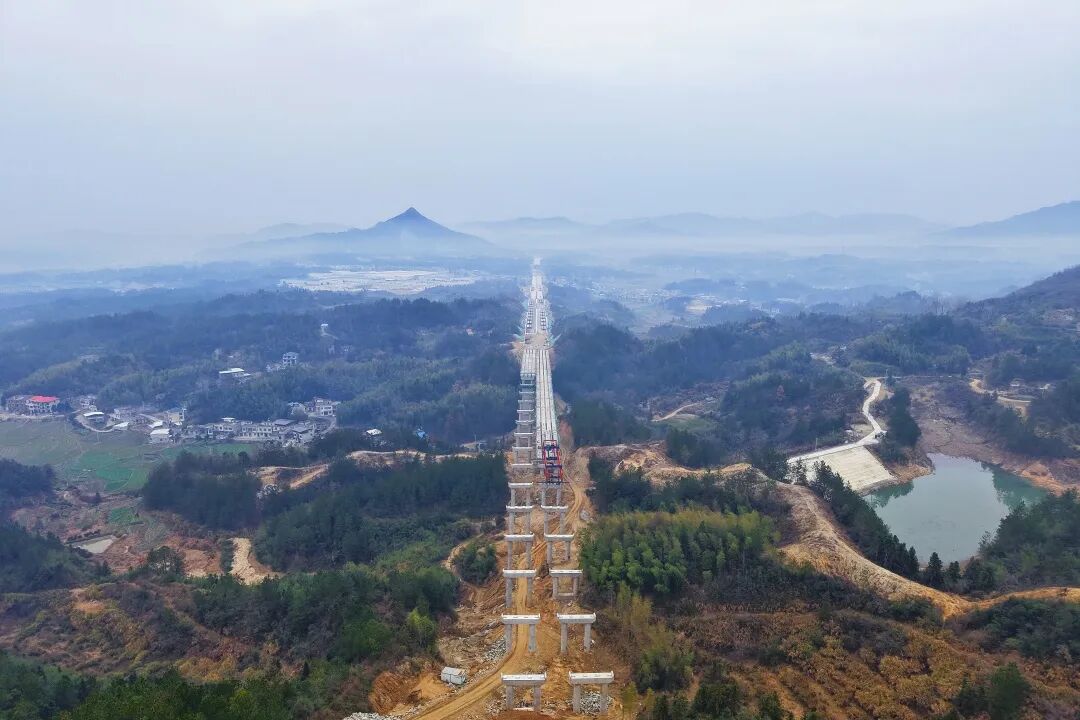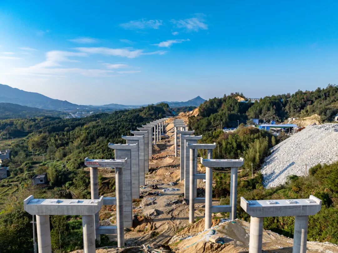 春潮涌動,戰(zhàn)鼓催征,一場宏大的 “穿針引線” 施工正在鄂贛群山間進行 ——近 700 根巨型墩柱扎根大地串聯出一條省際大通道的堅實坐標......