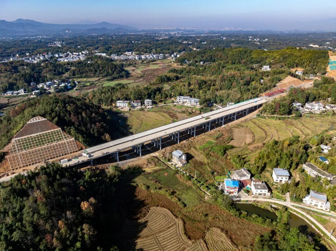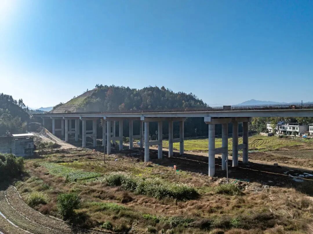 文家屋大橋、坳上大橋橫跨山坳,1124 米的路線高差起伏巨大,橋梁墩柱最高 39.6 米、最低僅 2 米,懸殊的高差對施工精度提出了挑戰(zhàn),是標段內重點控制性工程。