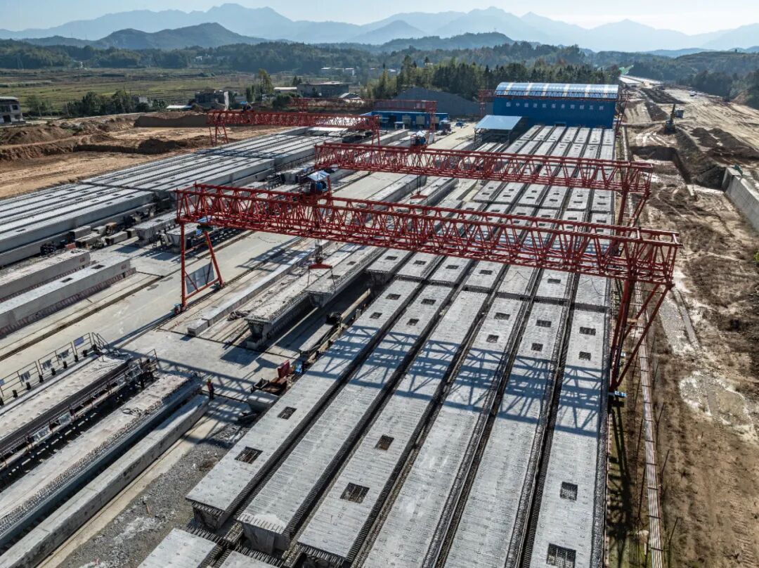 目前,項目已經完成 893 根樁、670 根墩施工,累計架設 1239 片箱梁,3 座大型預制梁場正滿負荷運轉,平均每 4 小時就有一片箱梁下線,每 3 小時就有一片箱梁架設到位。