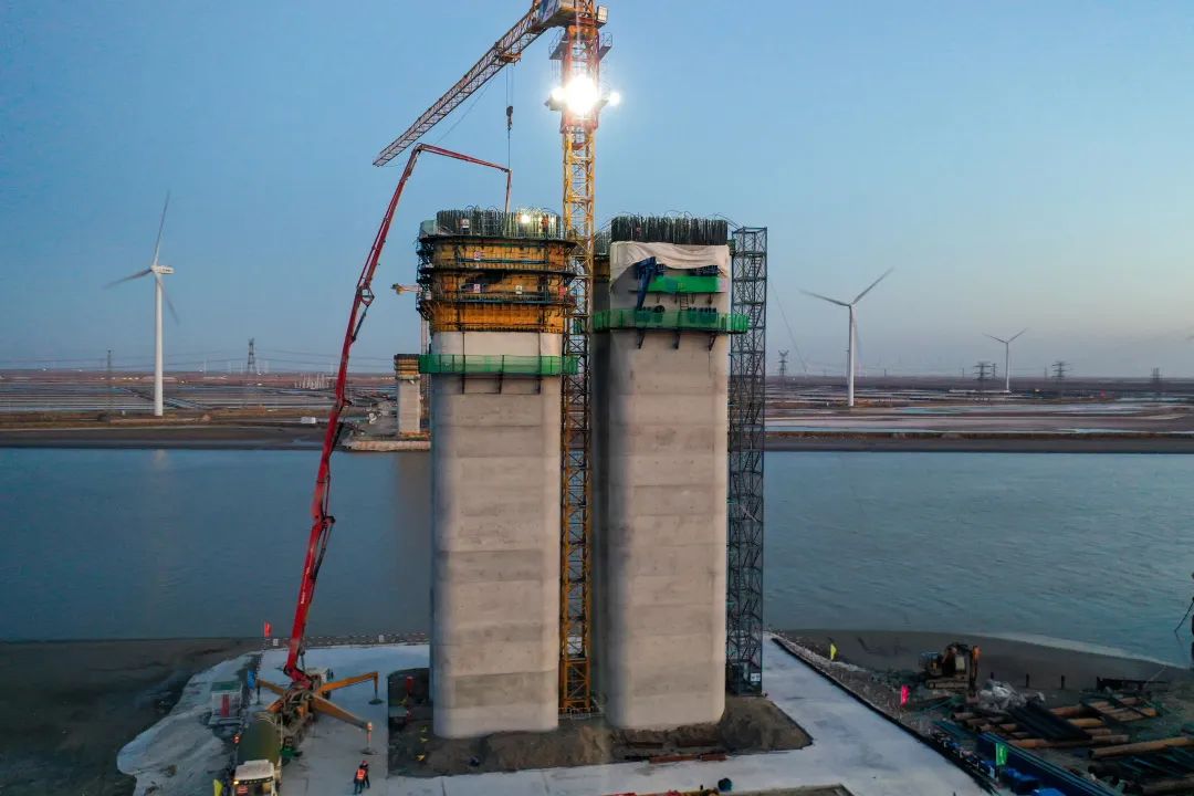 3月1日晚,G228丹東線濱州段項目連續(xù)奮戰(zhàn)8個小時,完成套爾河特大橋首墩最后一節(jié)澆筑,標(biāo)志著世界第一跨徑梁橋,正式邁入橋梁上部結(jié)構(gòu)施工階段,墩柱高達(dá)42. 5米,相當(dāng)于兩個標(biāo)準(zhǔn)籃球場的大小,基坑開挖深度超13米,項目團(tuán)隊?wèi)?yīng)用超緩凝混凝土分兩層進(jìn)行澆筑,首次澆筑高度3.