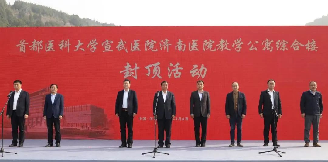 3月8日,濟(jì)南市中心醫(yī)院在東院區(qū)舉行首都醫(yī)科大學(xué)宣武醫(yī)院濟(jì)南醫(yī)院教學(xué)公寓綜合樓封頂活動。