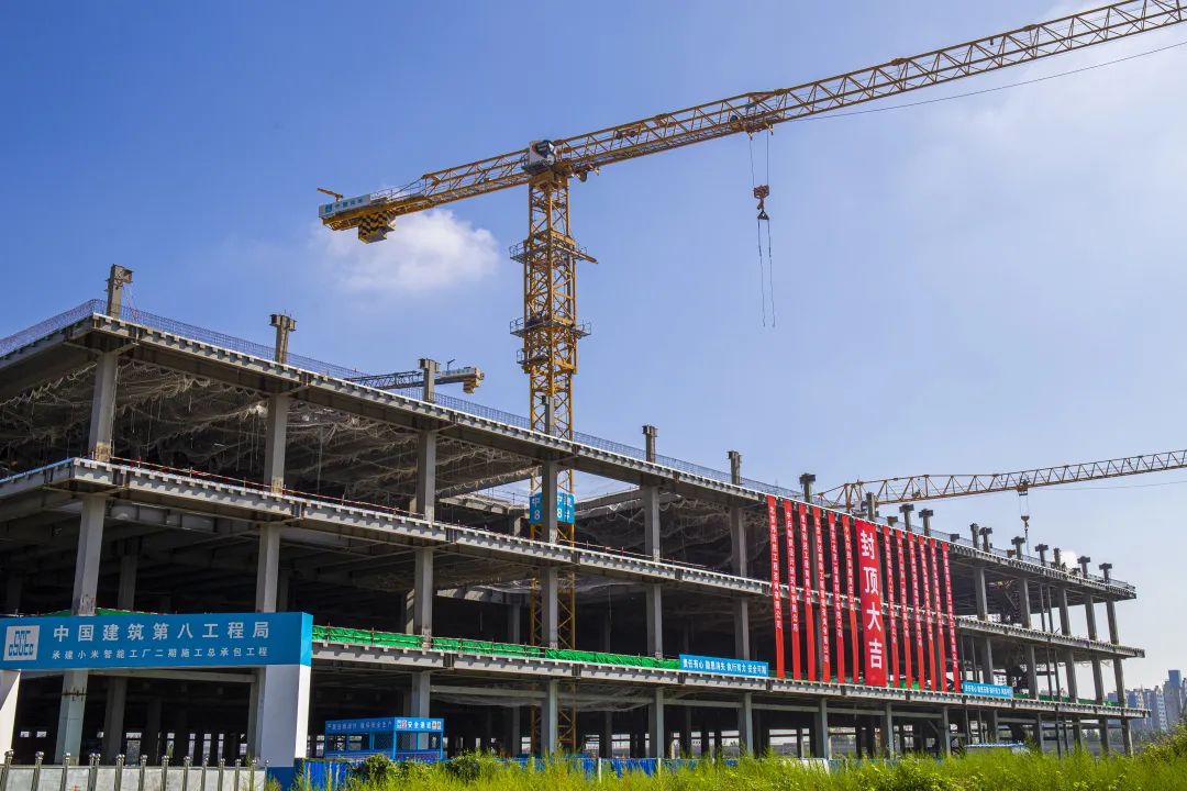 8月10日上午,伴隨著最后一方混凝土的澆筑,由中建八一承建的小米智能工廠二期項目完成全面封頂。