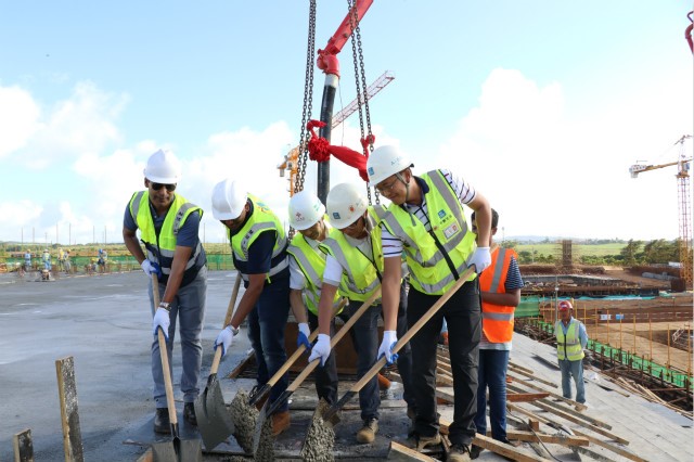 毛里求斯圣皮埃爾科特多沃綜合體育中心項目體育場地塊主體結構封頂