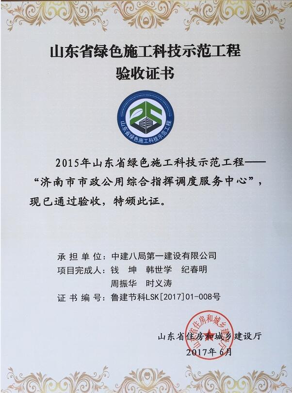 公司承建的“濟(jì)南市市政公用綜合指揮調(diào)度服務(wù)中心”通過山東省綠色施工科技示范工程驗(yàn)收。