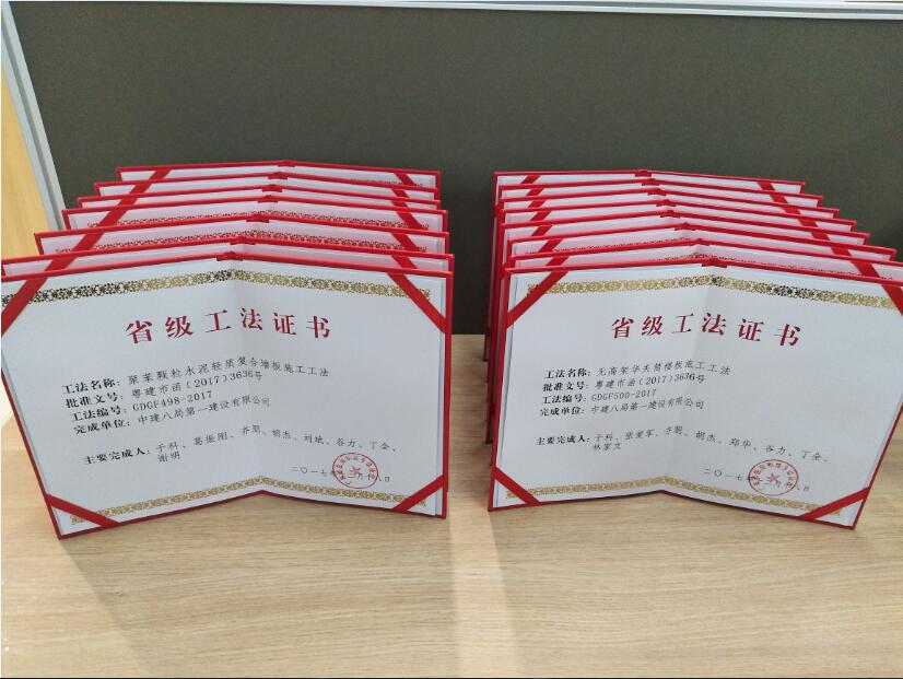 1月24日華南公司領(lǐng)取了廣東省住房和城鄉(xiāng)建設(shè)廳下發(fā)的15項(xiàng)省級工法證書,標(biāo)志著華南公司17年科技獎(jiǎng)項(xiàng)圓滿收官。