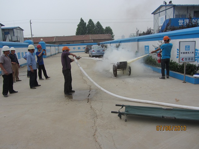 為增強(qiáng)施工現(xiàn)場全體人員的消防意識(shí),搞好消防工作,確?,F(xiàn)場人員及財(cái)產(chǎn)安全,省會(huì)文化藝術(shù)中心配套高層ⅠⅢ標(biāo)段項(xiàng)目部于2013年6月7日組織進(jìn)行了消防應(yīng)急演練活動(dòng)。