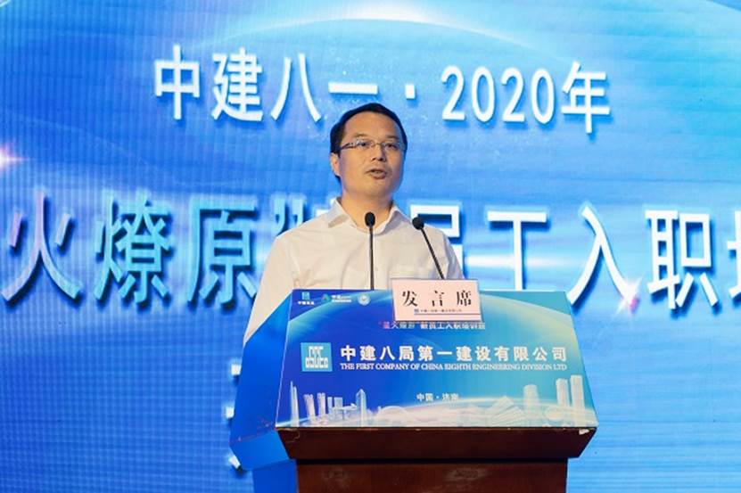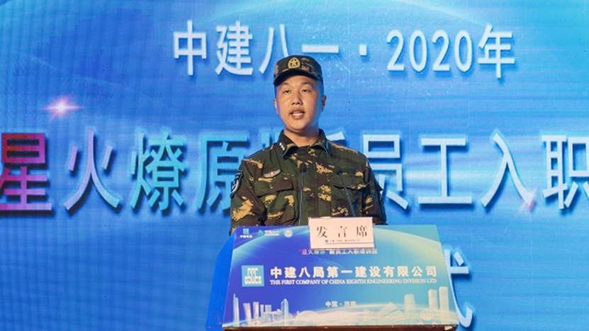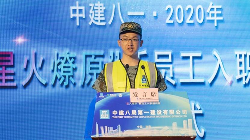 2020屆新員工黃成作為代表發(fā)言:“希望在中建八局如鳳凰沐火重生,追隨前輩的身影,成為召之即來,來之能戰(zhàn),戰(zhàn)之必勝的八局鐵軍!”最后,新員工們齊唱中建司歌在雄壯嘹亮的歌聲下“星火燎原”培訓(xùn)班正式開班!