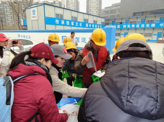 雷鋒日當天,由法制日報社副總編輯陳晶晶帶隊組成的“學雷鋒、樹新風”法制宣傳小組來到望京SOHO項目部采訪參觀,并與項目管理人員及工人交流雷鋒精神與法律知識。