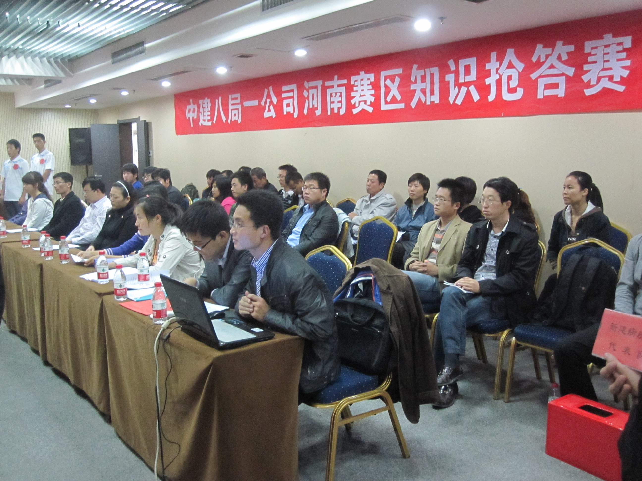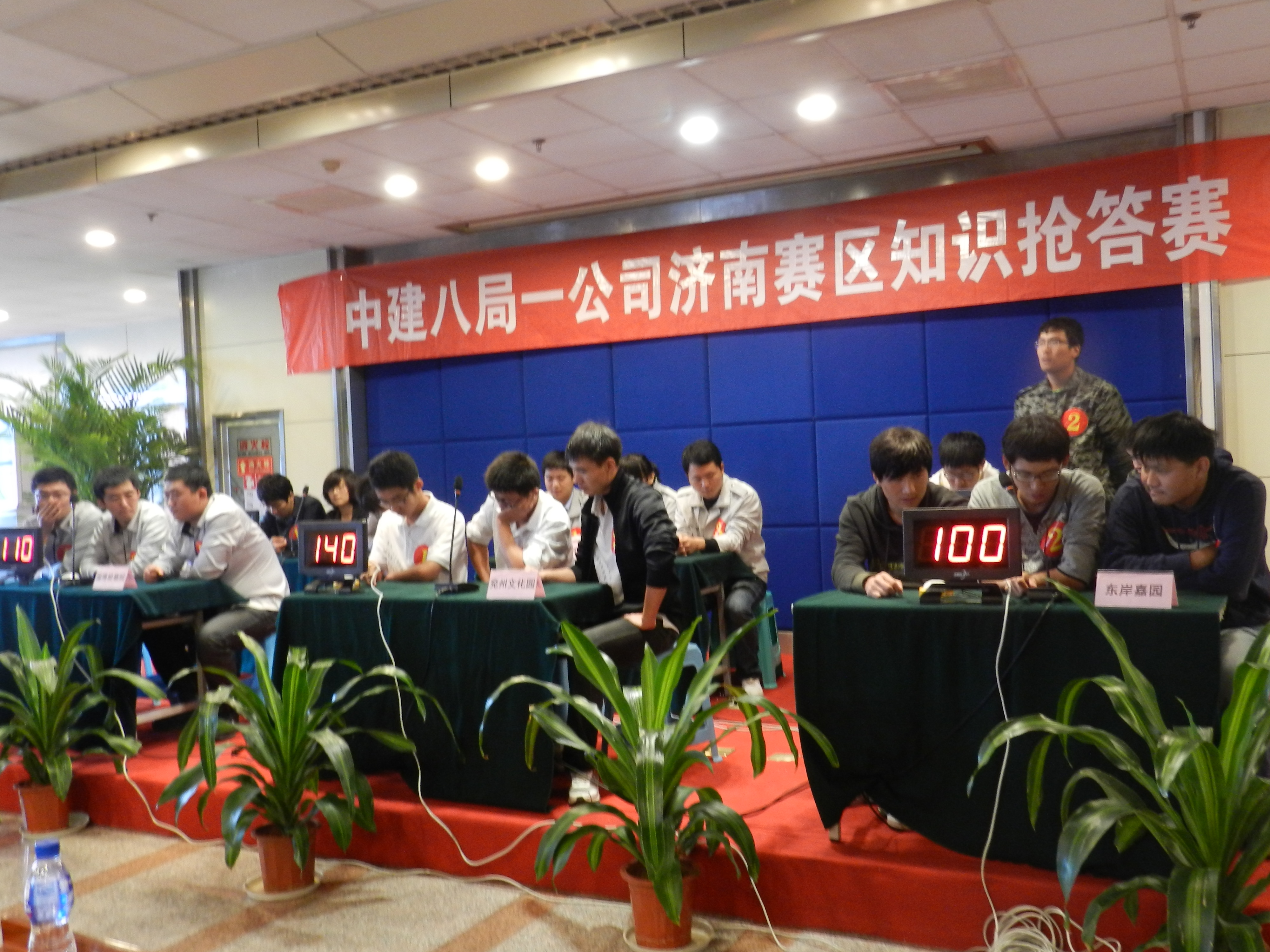 青島分公司、上海分公司、廣東分公司于9月3號(hào)率先開(kāi)賽,北京分公司、河南分公司、安徽分公司、濟(jì)南分公司于9月17號(hào)同時(shí)開(kāi)賽,各單位領(lǐng)導(dǎo)高度重視,廣東分公司經(jīng)理、書(shū)記均出席了此次活動(dòng)、北京分公司項(xiàng)目經(jīng)理均到現(xiàn)場(chǎng)為自己的隊(duì)員加油鼓勁,所有參賽隊(duì)員及觀眾均統(tǒng)一著裝,體現(xiàn)了對(duì)此次活動(dòng)的重視程度。河南公司制作的知識(shí)搶答賽預(yù)告片給人耳目一新的感覺(jué);廣東賽區(qū)廣東分公司機(jī)關(guān)代表隊(duì)在風(fēng)險(xiǎn)題環(huán)節(jié)不敵水榭春天代表隊(duì),錯(cuò)失冠軍;濟(jì)南賽區(qū)濟(jì)南公安局項(xiàng)目代表隊(duì)遙遙領(lǐng)先、兗州文化園項(xiàng)目代表隊(duì)緊追其后;北京賽區(qū)天津中船重工項(xiàng)目代表隊(duì)和天津檢疫局代表隊(duì)展開(kāi)了激烈爭(zhēng)奪。安裝分公司、裝飾分公司、基礎(chǔ)設(shè)施分公司書(shū)記也根據(jù)情況出席了分片區(qū)比賽現(xiàn)場(chǎng)?;顒?dòng)組委會(huì)從各單位準(zhǔn)備情況、項(xiàng)目參賽率、錯(cuò)題率、犯規(guī)情況、觀眾人數(shù)、主持人主持情況、書(shū)面答題等各個(gè)方面對(duì)各賽區(qū)組織工作進(jìn)行了綜合考評(píng)。