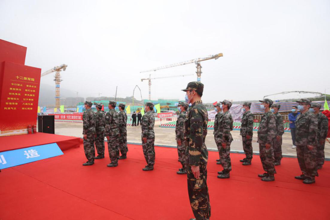 頑強(qiáng)拼搏、知難而上、敢于創(chuàng)新、勇于爭(zhēng)先,項(xiàng)目負(fù)責(zé)人劉成剛帶領(lǐng)工友宣誓,發(fā)揚(yáng)“鐵軍”精神,誓要圓滿完成建設(shè)任務(wù)。