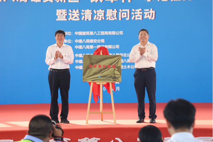 8月12日早晨7:30,中建八局雄安新區(qū)“鐵軍杯”示范性勞動競賽暨送清涼慰問活動,在雄安站樞紐片區(qū)市政道路、綜合管廊、排水管網(wǎng)系統(tǒng)(一期)工程一標段項目舉辦。本次勞動競賽受到雄安新區(qū)黨工委、管委會和雄安集團的高度重視。雄安新區(qū)黨工委副書記、管委會常務(wù)副主任、中國雄安集團有限公司黨委書記、董事長田金昌,雄安集團有限公司黨委副書記、總經(jīng)理劉中林,雄安新區(qū)黨工委委員、管委會副主任梁遠,雄安新區(qū)建設(shè)指揮部副總指揮、昝崗片區(qū)指揮部指揮長張躍峰等39人應(yīng)邀出席活動。