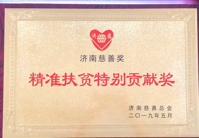 公司榮獲濟南市慈善總會頒發(fā)的精準扶貧特別貢獻獎