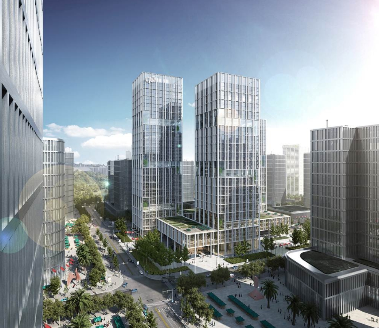 深圳市中廣核工程大廈是中廣核工程有限公司總部辦公大樓及研發(fā)基地。項目位于深圳市龍崗區(qū)同樂科技園南同大道與寶龍三路交匯處,總用地面積約2.68萬平方米,總建筑面積約32.89萬平方米。大廈由三座通過基座相連的品字形布置的塔樓和回字形裙樓組成,其中A塔約189.25米,B塔約175.40米,C塔約129米,三棟塔樓均為型鋼混凝土框架-混凝土核心筒結(jié)構(gòu)。連接三棟塔樓的是回字形的裙樓,為鋼管混凝土柱―鋼梁框架結(jié)構(gòu)。
