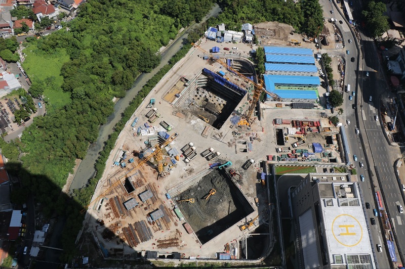 印尼一號雙塔項目建筑面積30.6萬平方米,建筑高度303m,地下七層,地上59層,開挖深度26.77m,局部開挖深度32.2m,屬于超高層、超大深基坑工程。本工程管理的重難點主要為:平面規(guī)劃管理、工期進度管理、深化設(shè)計管理、中印技術(shù)融合及當?shù)刭Y源整合。