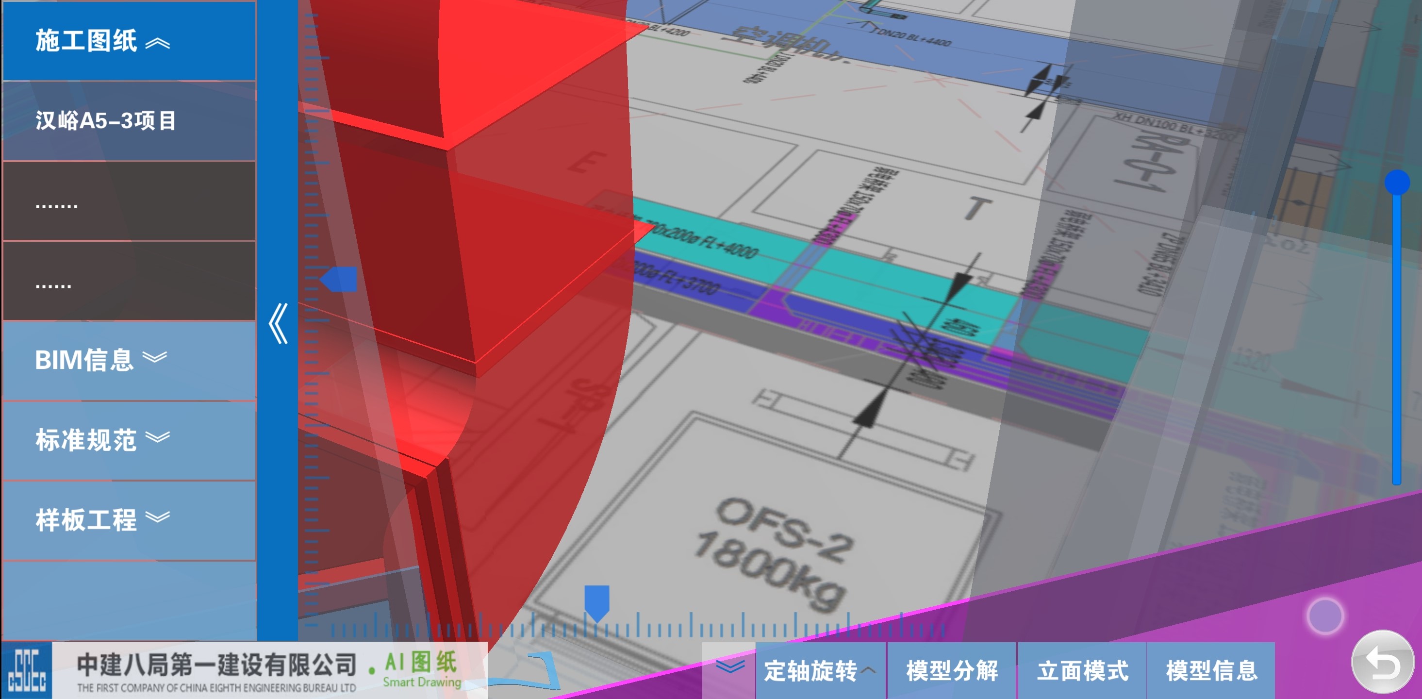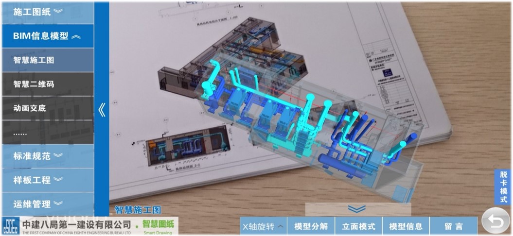 電子圖紙升維技術(shù):基于智慧圖紙APP與智能終端觸摸屏幕,觸控電子版2D施工圖紙,自動(dòng)虛擬出三維空間,圖紙與3D信息模型一并呈現(xiàn),并可通過(guò)觸控自由縮放、分解模型,調(diào)取構(gòu)建信息等。