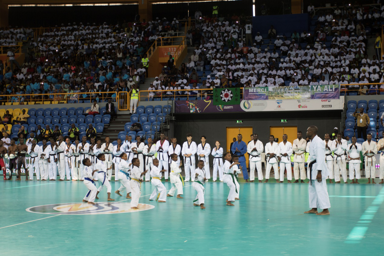 This grand ceremony drew enthusiastic responses from the local public. The performing guests illuminated the red carpet and stage with their great charm and attracted the light of countless flashes when they came on stage. First of all, the Minister for Sports gave his sincere praise to CSCEC in his congratulatory speech, and expressed his respect and gratitude to all the management personnel of CSCEC for their perfect contract performance in face of such a tight schedule. Then, Shi Honggang made a speech of congratulation on behalf of the general contractor, extending the gratitude to the government and people of Gabon for their support for the stadium and hoping to continue to cooperate with the Gabonese Republic and work with the government and people of Gabon so as to create a beautiful future of the Gabonese Republic. After the blessing ceremony, wonderful performances were given in the stadium, and the President interacted with the performing team with joy.