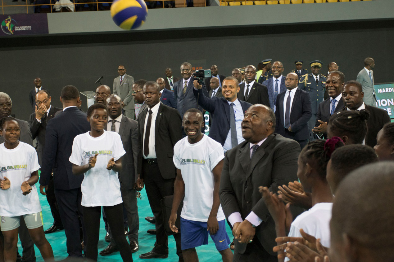 Gabon’s President is interacting with players.