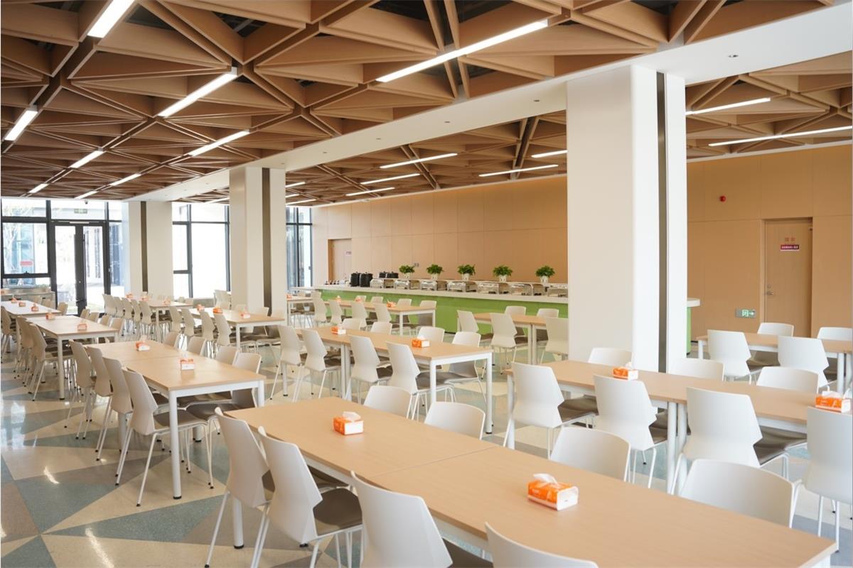中心設(shè)置教學(xué)區(qū)、共享區(qū)與住宿區(qū)三大功能分區(qū)。其中教學(xué)區(qū)共有四間教室和一間可容納300人的報(bào)告廳。教室可滿足54人、96人、150人教學(xué)需求,適應(yīng)多種教學(xué)模式和場(chǎng)景。共享區(qū)配有餐廳、書吧、水吧和休息區(qū),供學(xué)員放松休息使用;住宿區(qū)公寓樓共四層,包含 88 間標(biāo)準(zhǔn)間客房,可容納170余人住宿使用。